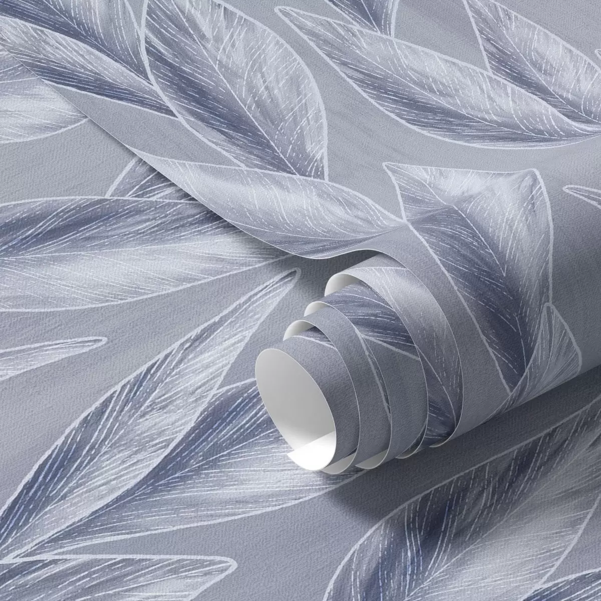 Tapeta Striebornomodré listy na šedomodrom pozadí, grafický vzor Nr. a00627
