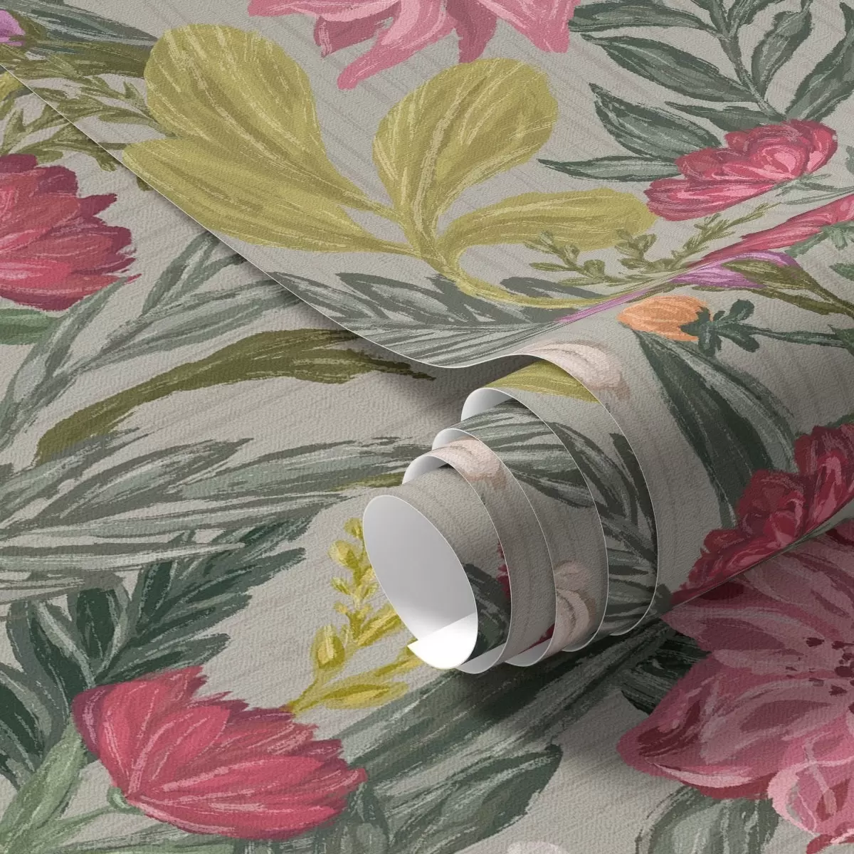 Tapeta Sýte ružové a krémové kvety na sivom pozadí, impasto textúra Nr. a00629