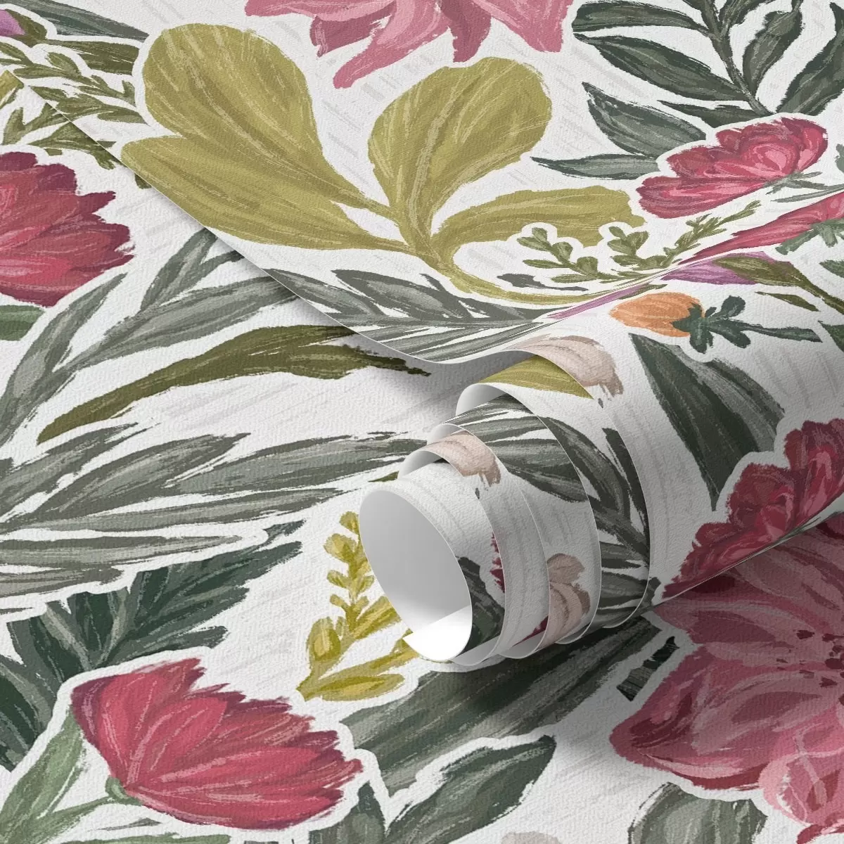 Tapeta Sýte ružové a krémové kvety na bielom pozadí, impasto textúra Nr. a00629v1