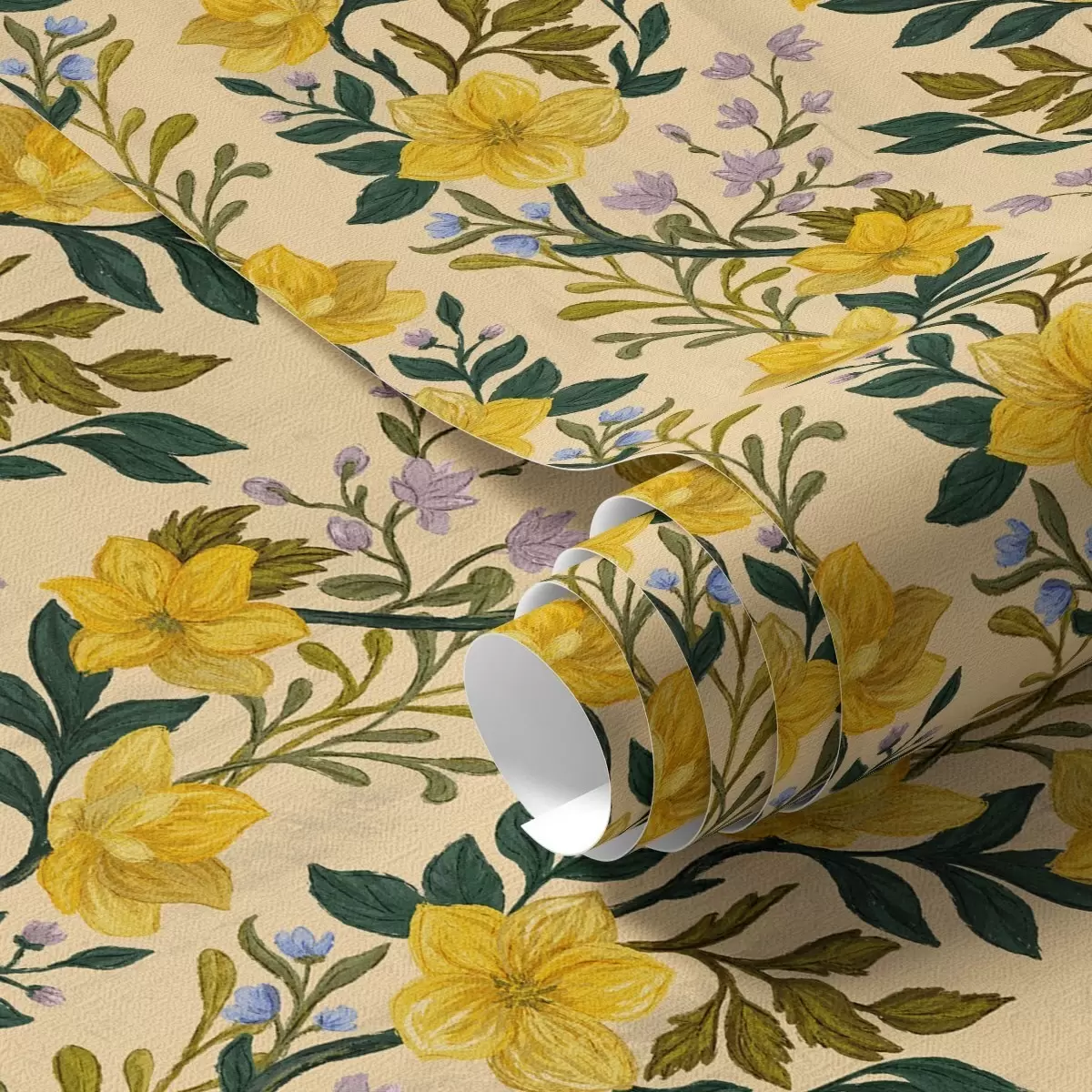 Tapeta Žlté kvety vo vertikálnych girlandách na smotanovom pozadí Nr. a00632