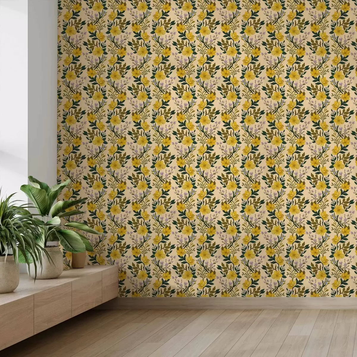 Tapeta Žlté kvety vo vertikálnych girlandách na smotanovom pozadí Nr. a00632