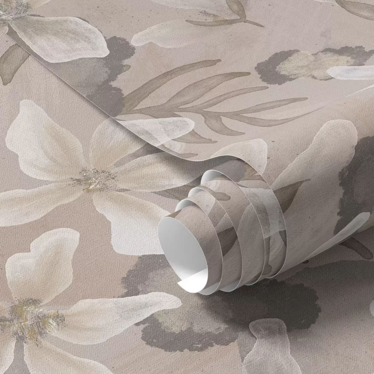 Tapeta Veľké béžové kvety s abstraktnými akvarelovými škvrnami Nr. a00635