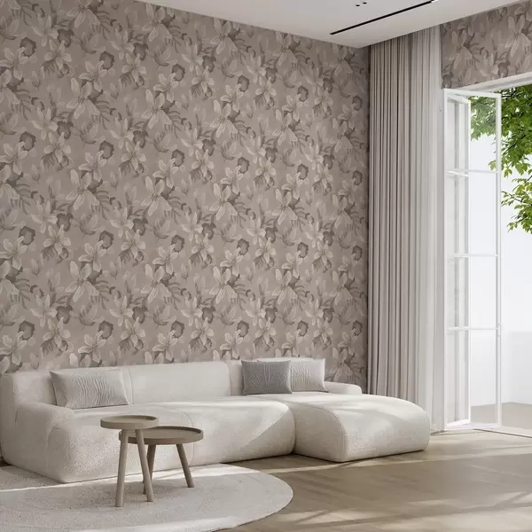 Tapeta Veľké béžové kvety s abstraktnými akvarelovými škvrnami Nr. a00635