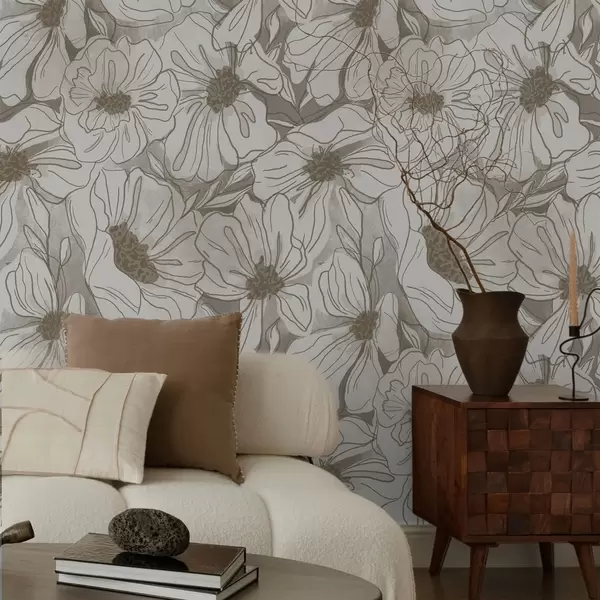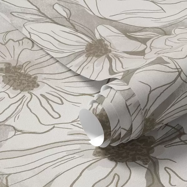 Tapeta Lineárne kvety v monochromatickej béžovo-sivej palete Nr. a00636