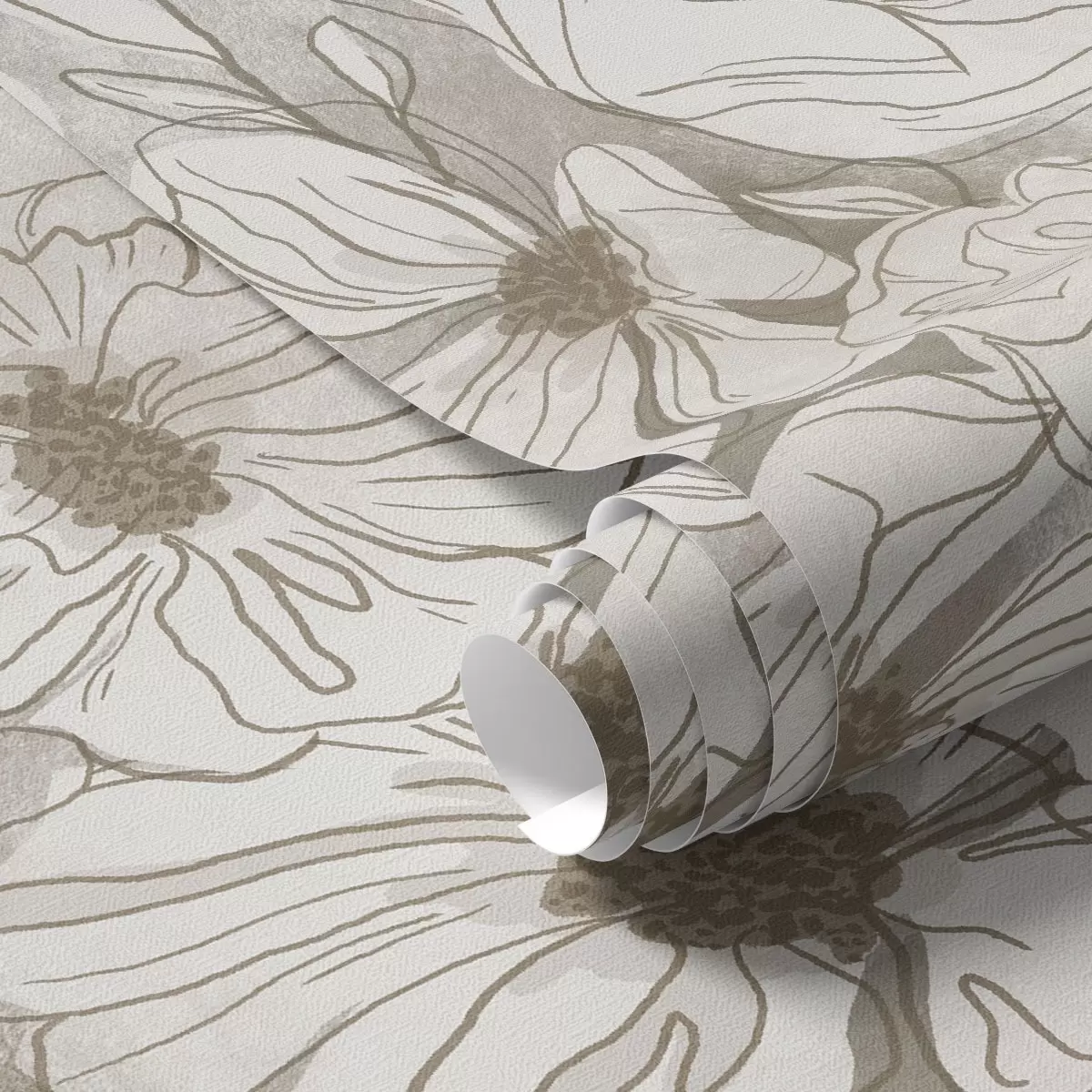 Tapeta Lineárne kvety v monochromatickej béžovo-sivej palete Nr. a00636