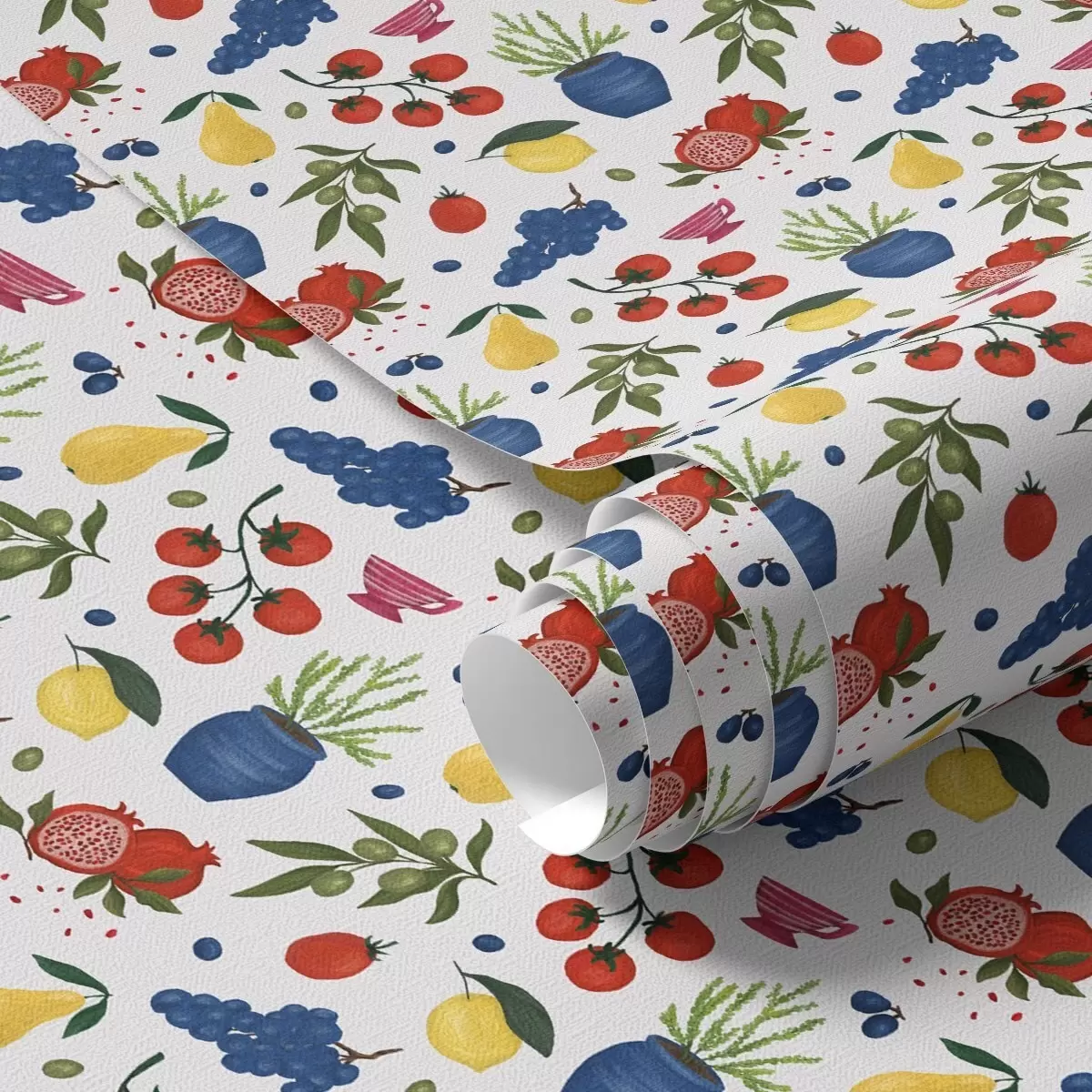 Tapeta Svetlý ovocno-botanický vzor na bielom pozadí Nr. a00637v1