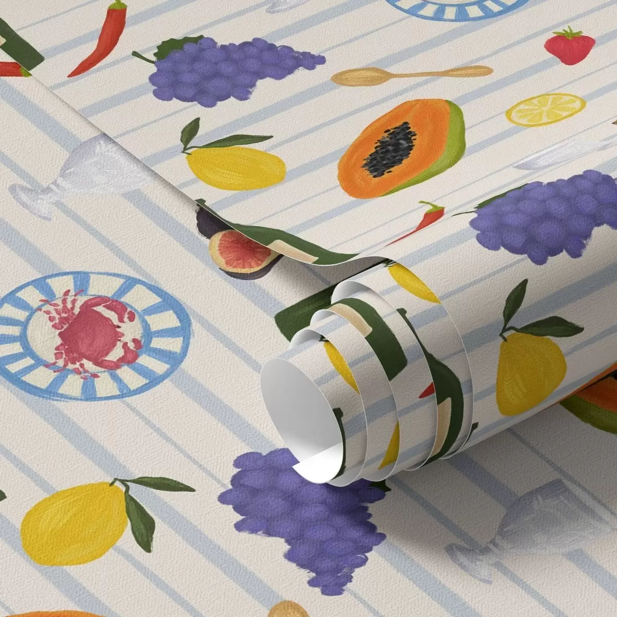 Tapeta Kuchynský obraz s ovocím, pohármi a taniermi Nr. a00638