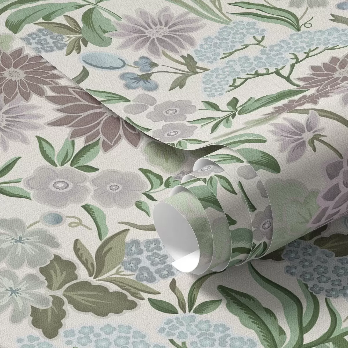 Tapeta Pastelové kvety a lístie v mätovo modrej palete Nr. a00642