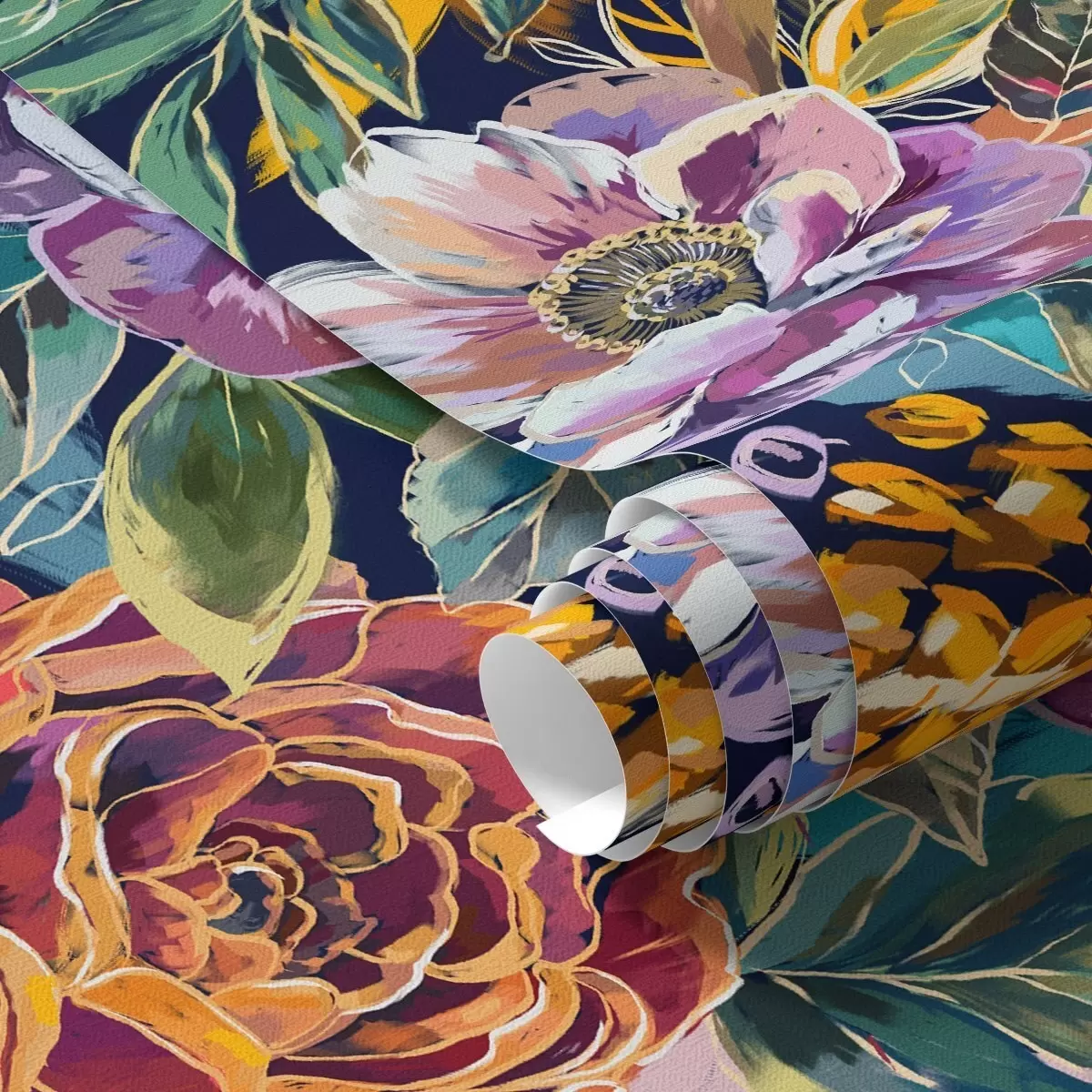 Tapeta Výrazné veľké kvety namaľované štetcom na tmavomodrom pozadí Nr. a00643