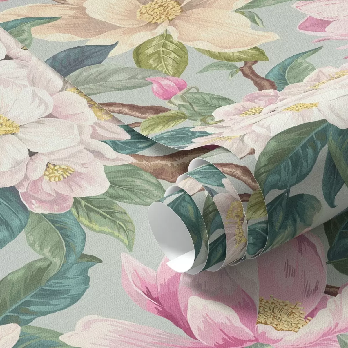 Tapeta Magnólie a biele kvety na mätovo-sivom pozadí Nr. a00644