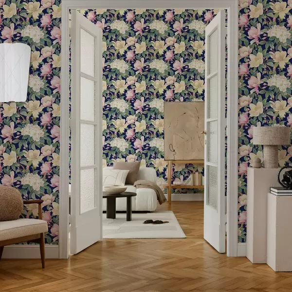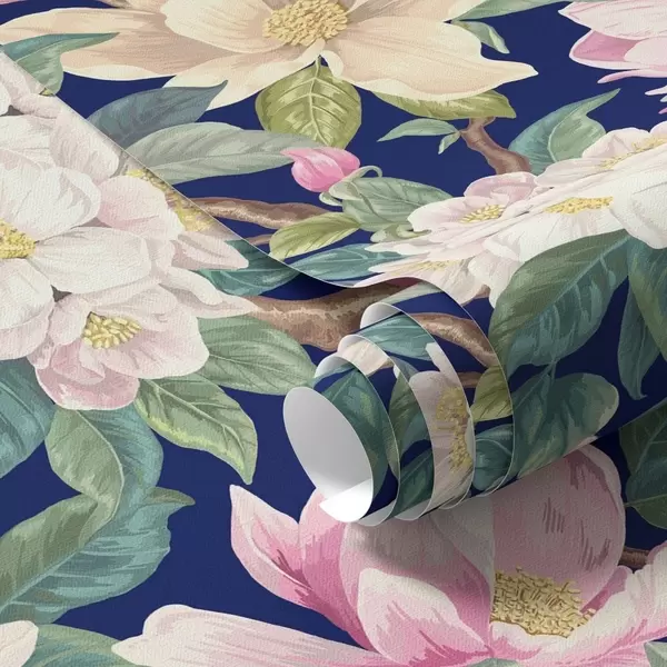 Tapeta Magnólie a púčiky na tmavomodrom pozadí Nr. a00644v1