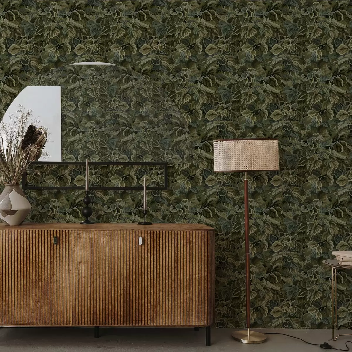 Tapeta Husté listy viniča v tmavozelenej palete Nr. a00647