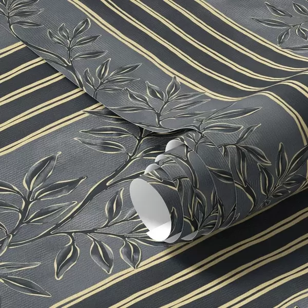 Tapeta Vertikálne pruhy s botanickými vzormi v tmavých odtieňoch Nr. a00648