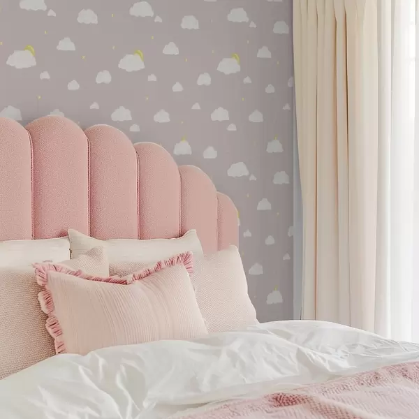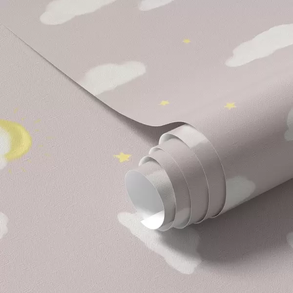 Tapeta Mäkké mraky, hviezdy a slnko na ružovo-sivom pozadí Nr. a00652v2