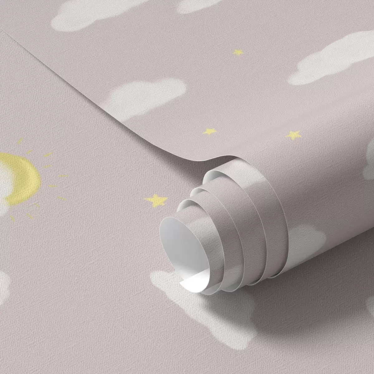 Tapeta Mäkké mraky, hviezdy a slnko na ružovo-sivom pozadí Nr. a00652v2