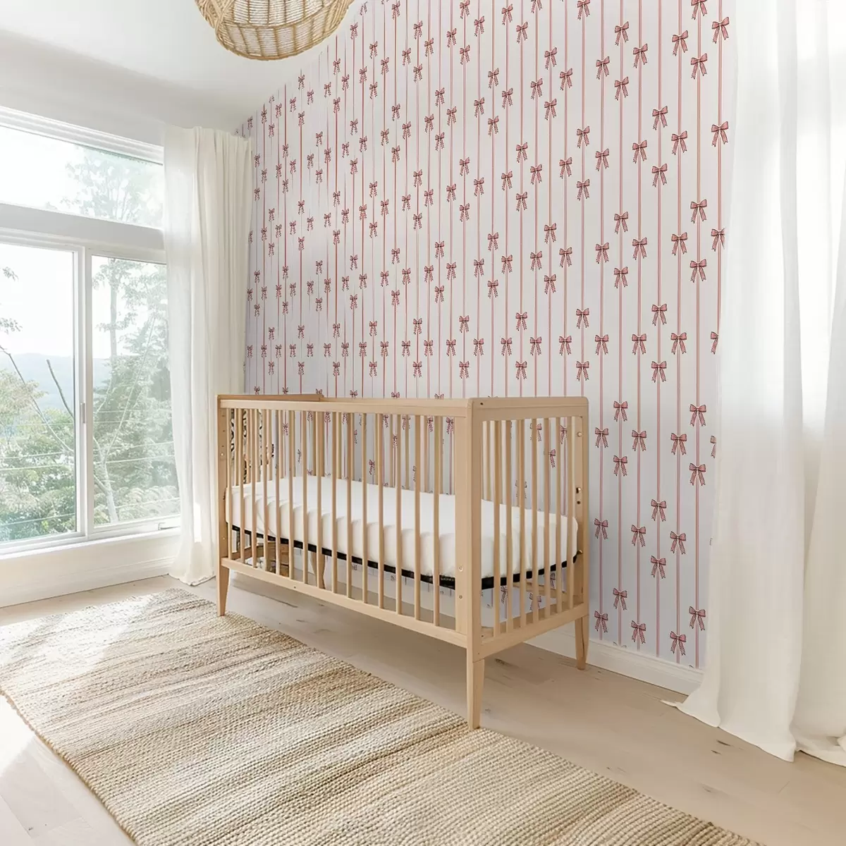 Tapeta Vertikálne stuhy s mašľami, teplá béžová farba Nr. a00653v1