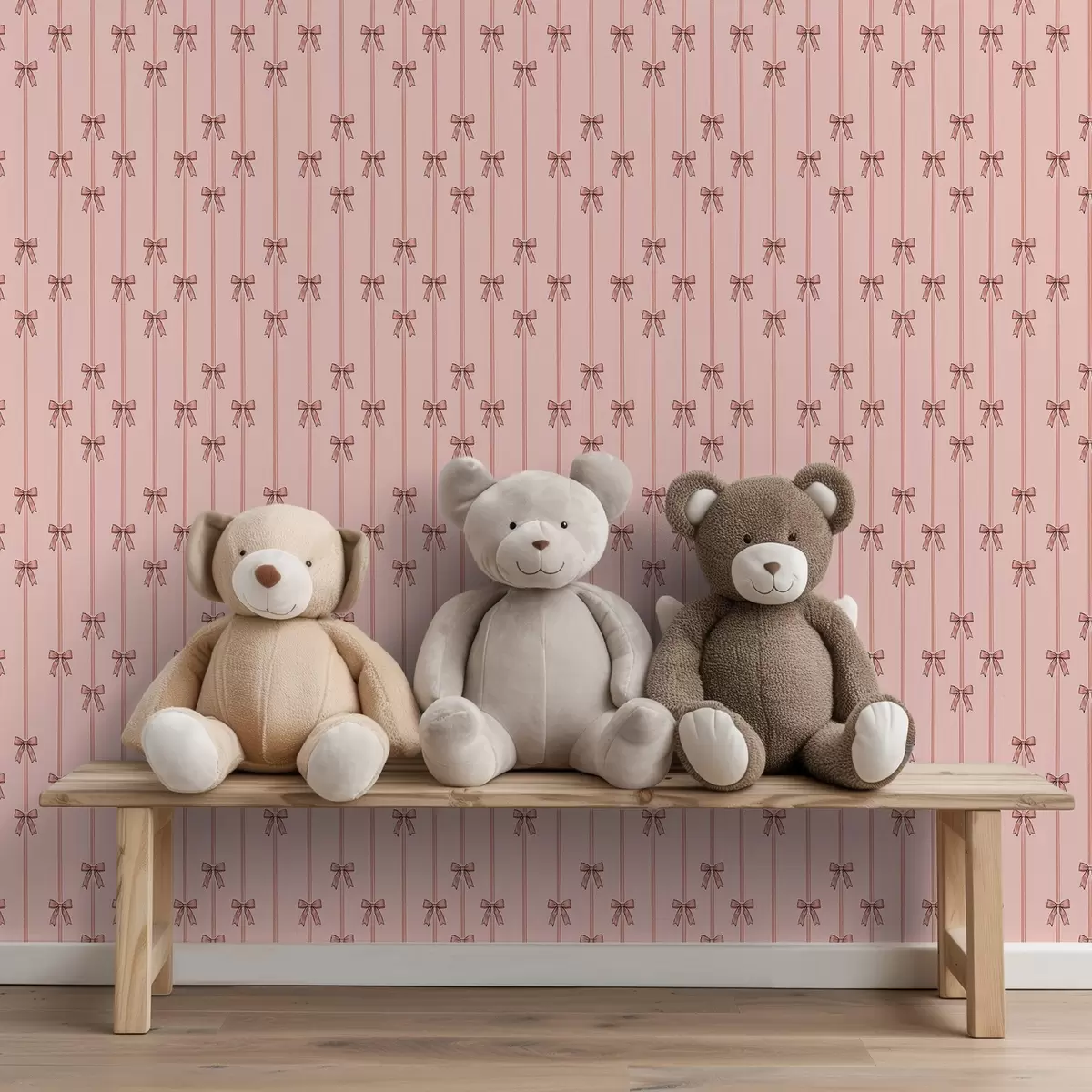 Tapeta Vertikálne stuhy s mašľami, koralovo ružové pozadie Nr. a00653v3