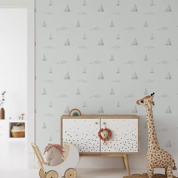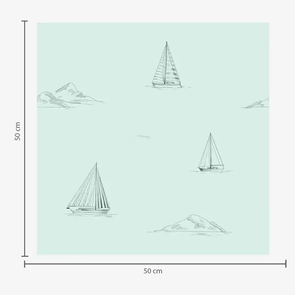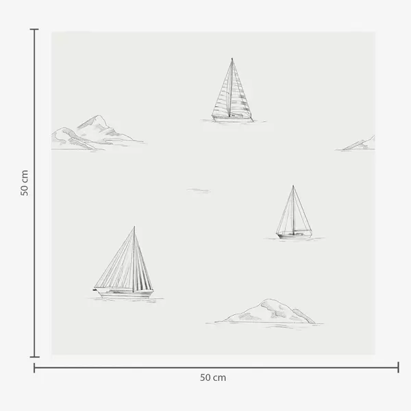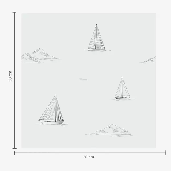 Tapeta Nakreslite jachty a ostrovy, chladné modro-šedé pozadie Nr. a00654