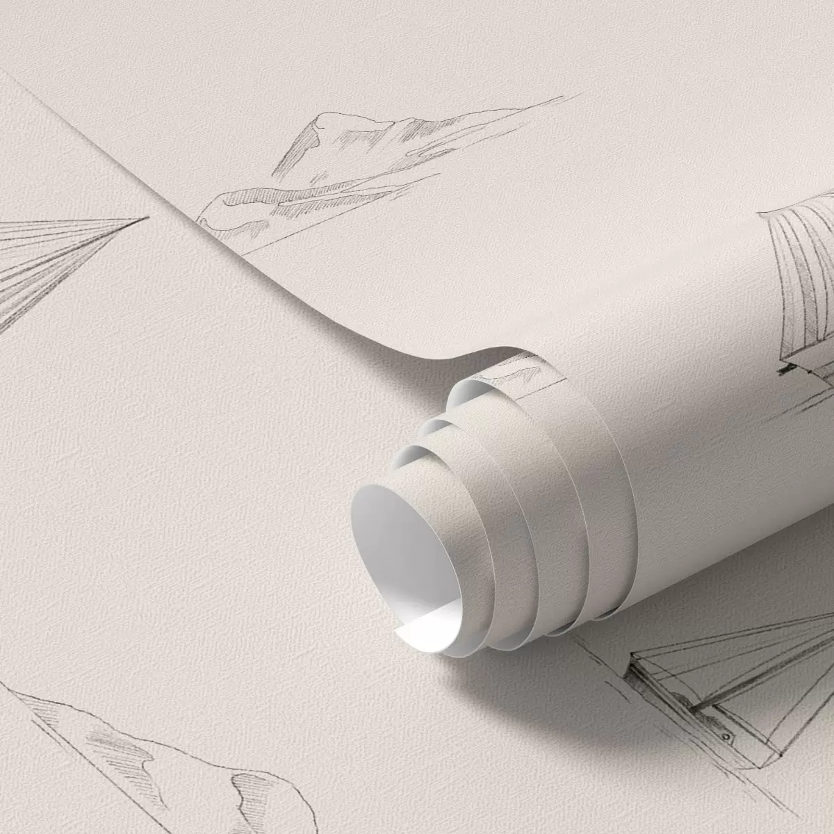 Tapeta Náčrt jacht a ostrovov, teplé krémové pozadie Nr. a00654v1