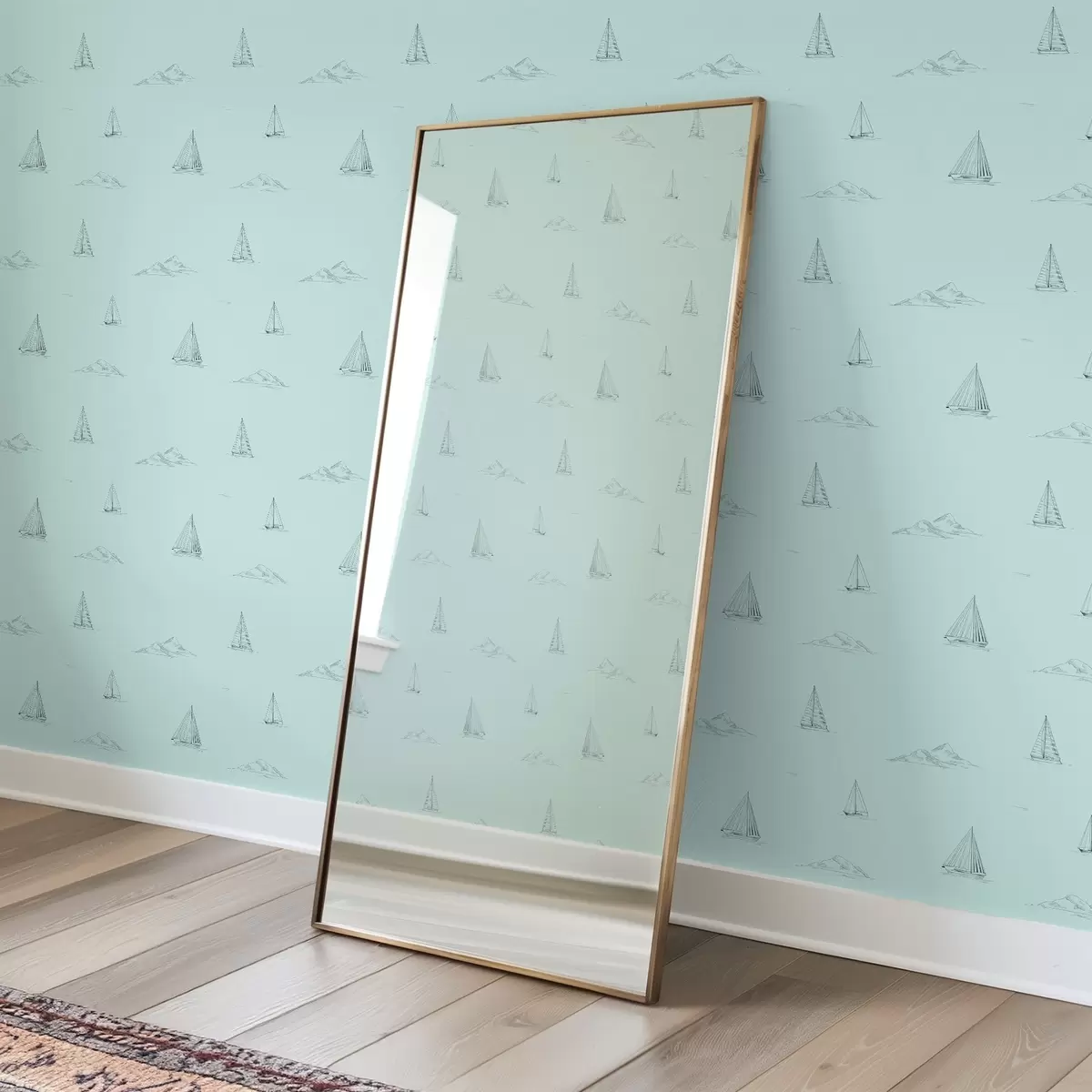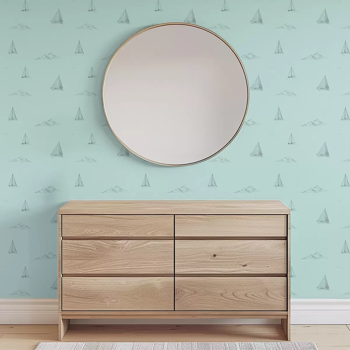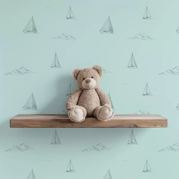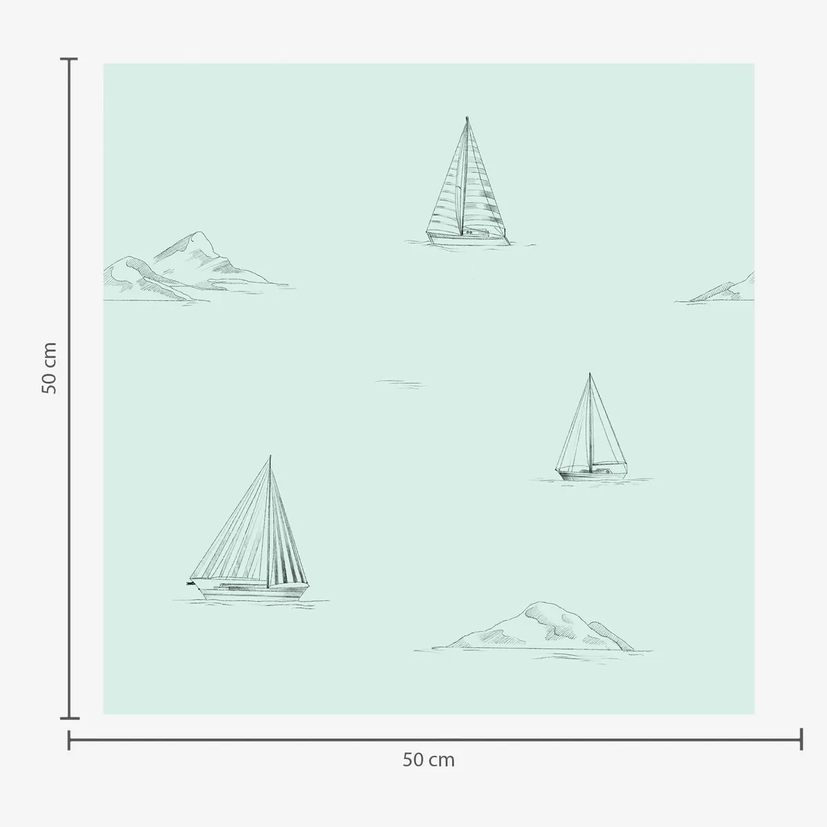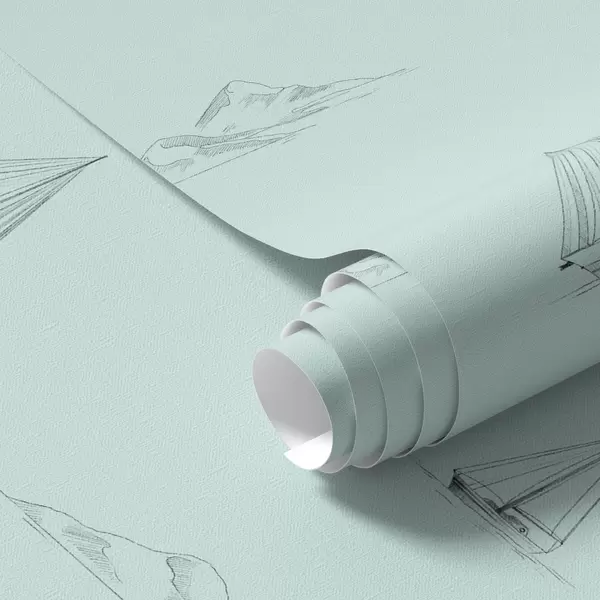 Tapeta Náčrt jacht a ostrovov, mätovo zelené pozadie Nr. a00654v4