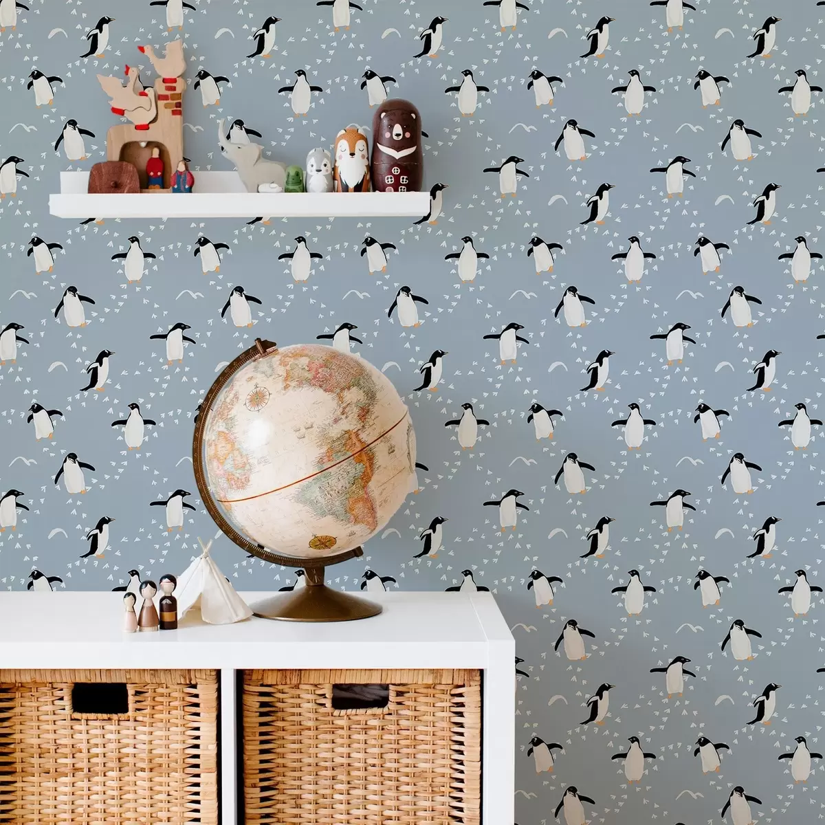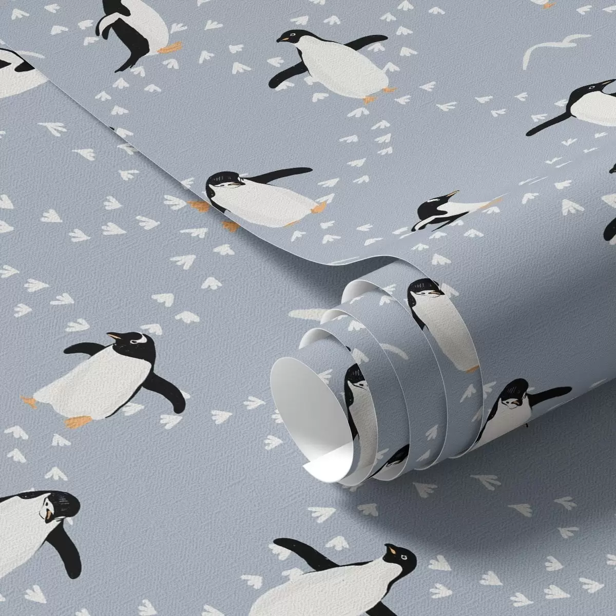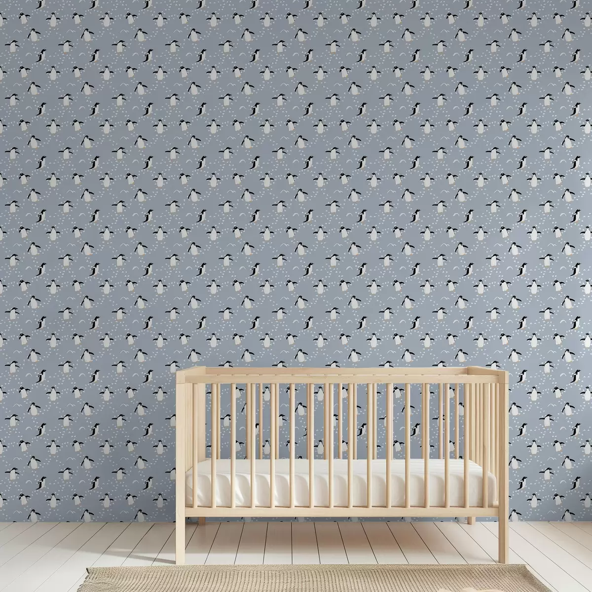 Tapeta Tučniaky na šedo-modrom pozadí s odtlačkami nôh Nr. a00655