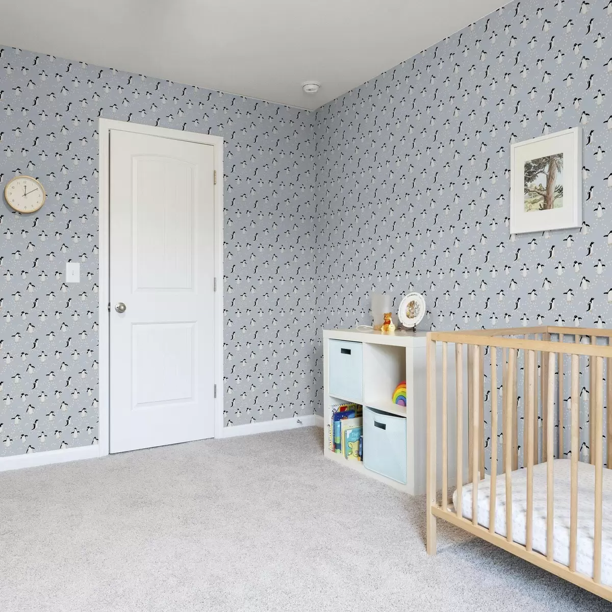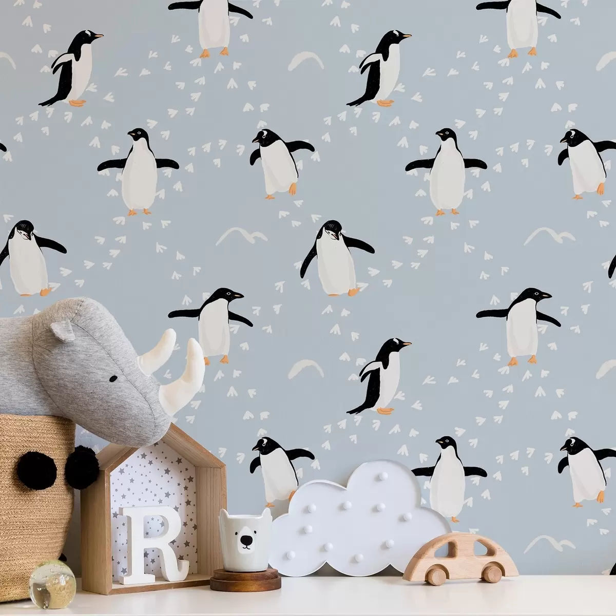 Tapeta Tučniaky na svetlo modrom pozadí, rytmus stôp Nr. a00655v2