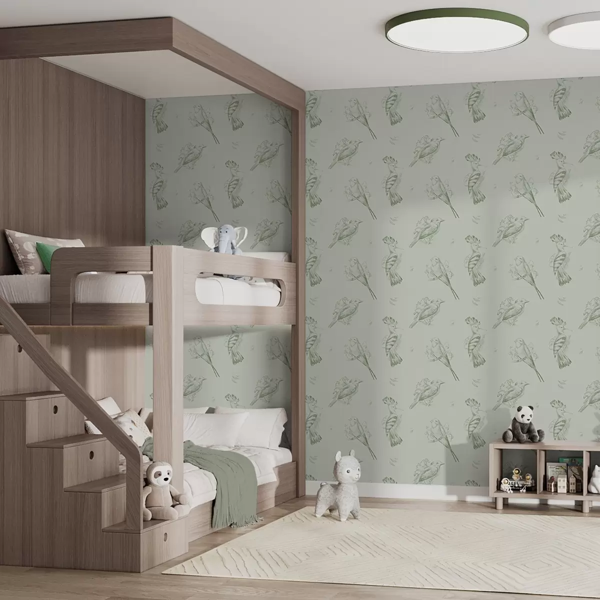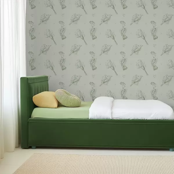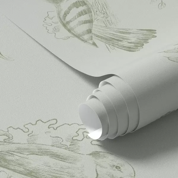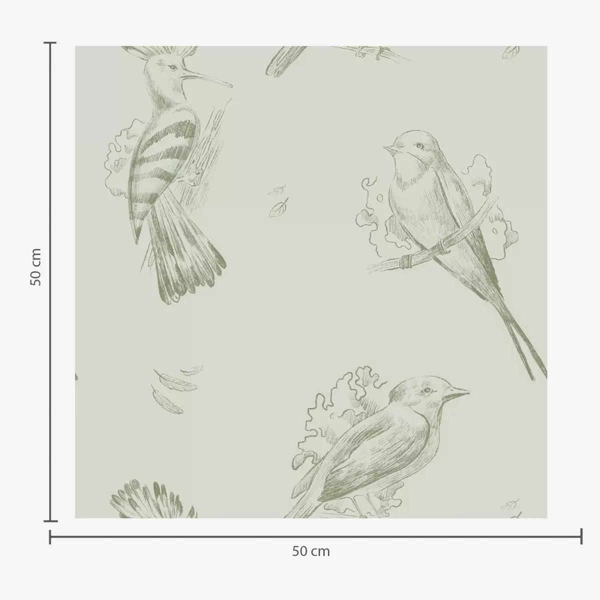 Tapeta Vtáčí toile: náčrt vtákov na šedo-zelenom pozadí Nr. a00656v1