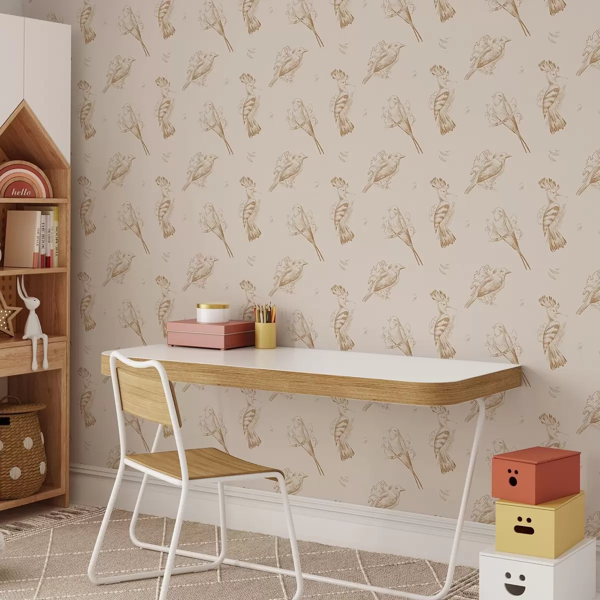 Tapeta Vtáčí toile: náčrt vtákov na teplom béžovom podklade Nr. a00656v3