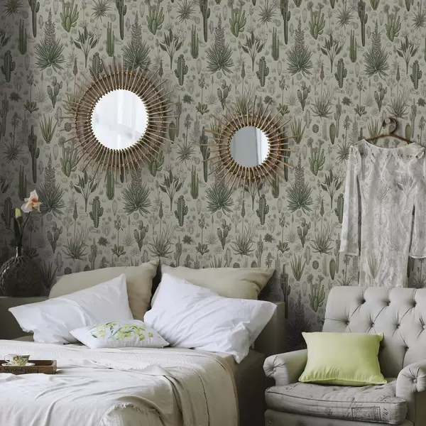 Tapeta Kaktusy a sukulenty na teplom pozadí, detailná potlač Nr. a00666