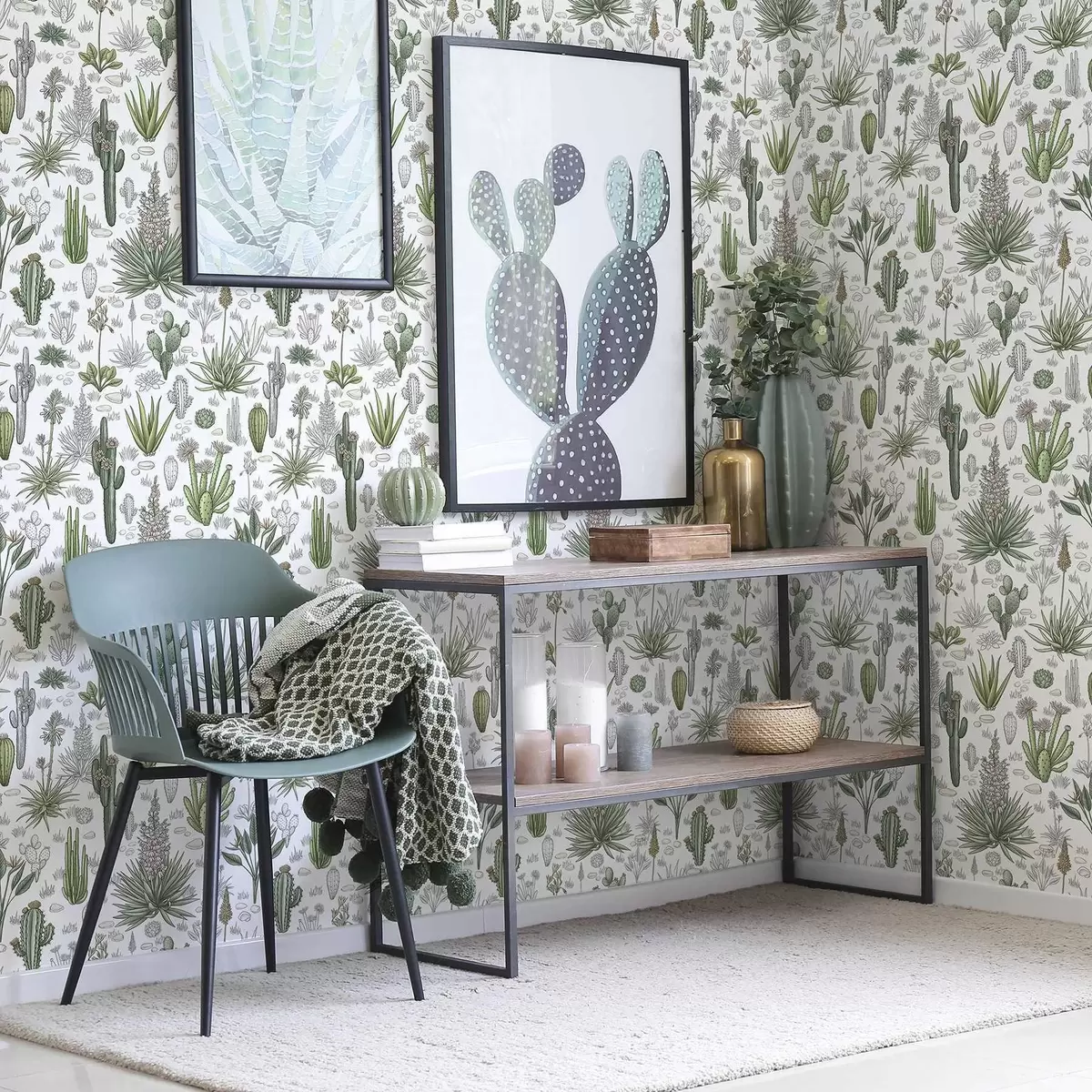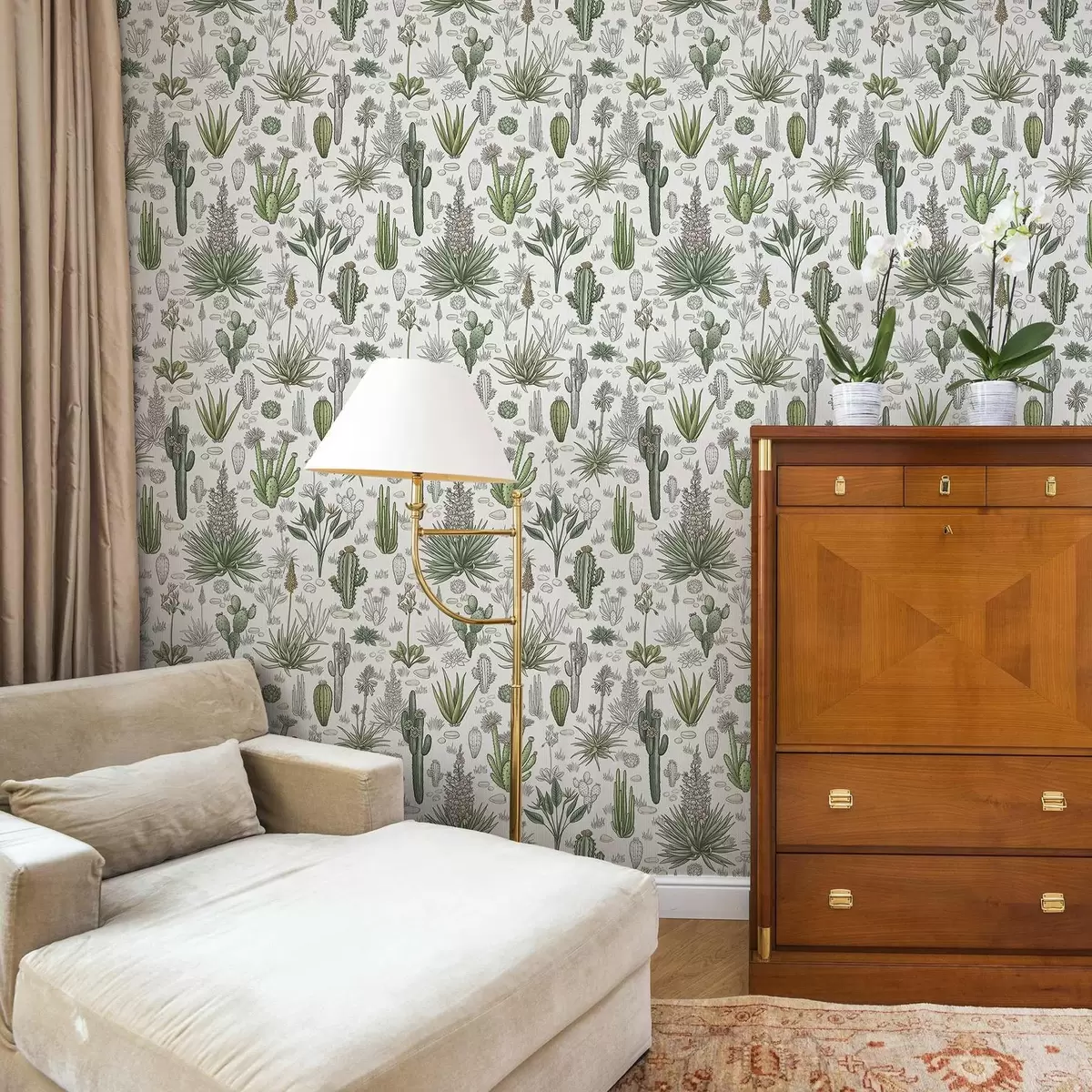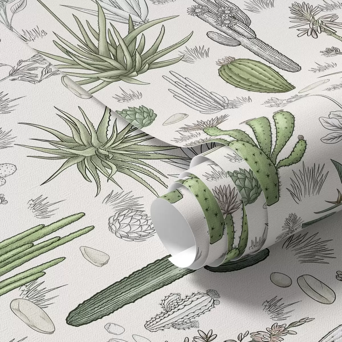 Tapeta Kaktusy a sukulenty na svetlom pozadí, lineárny štýl Nr. a00666v1