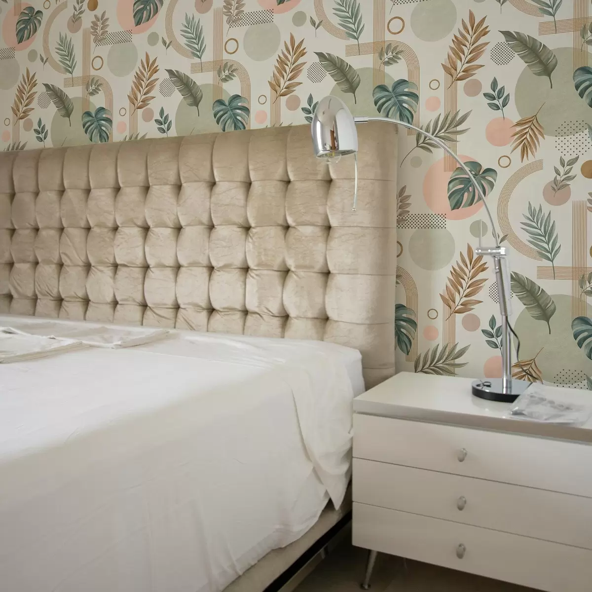 Tapeta Listy a geometrické tvary v pokojných teplých odtieňoch Nr. a00677