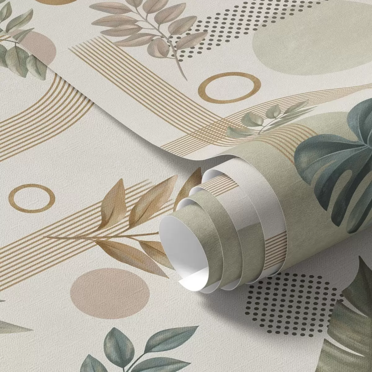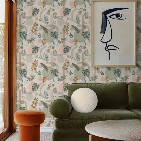 Tapeta Listy a geometrické tvary v pokojných teplých odtieňoch Nr. a00677