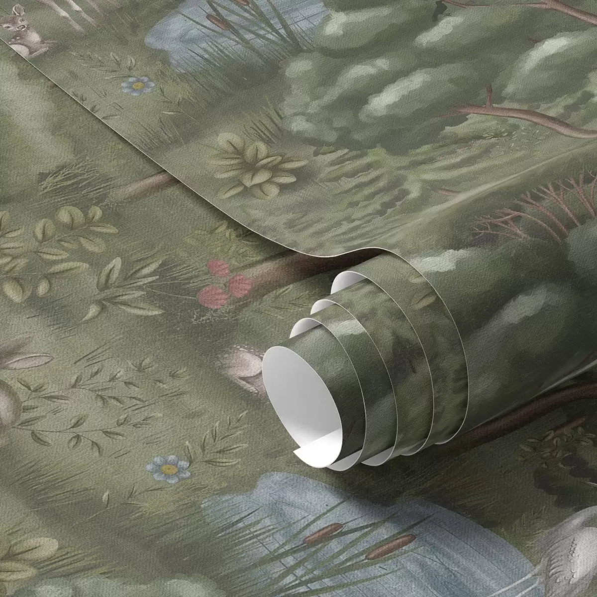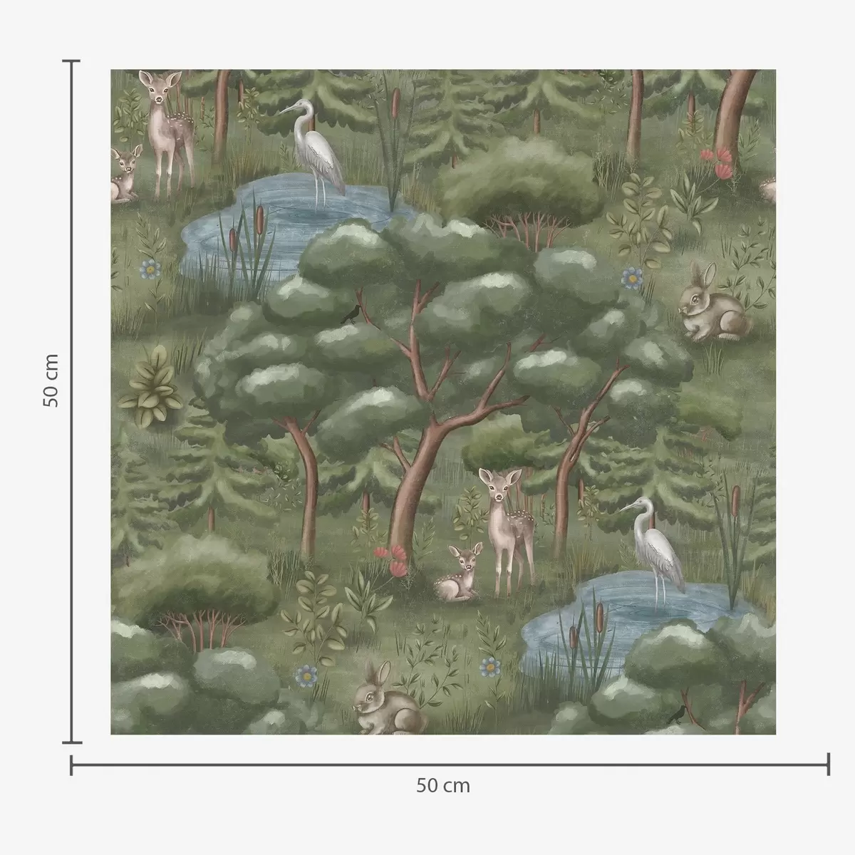 Tapeta Lesná polana s jeleními mláďatami, zajacmi a volavkami Nr. a00680
