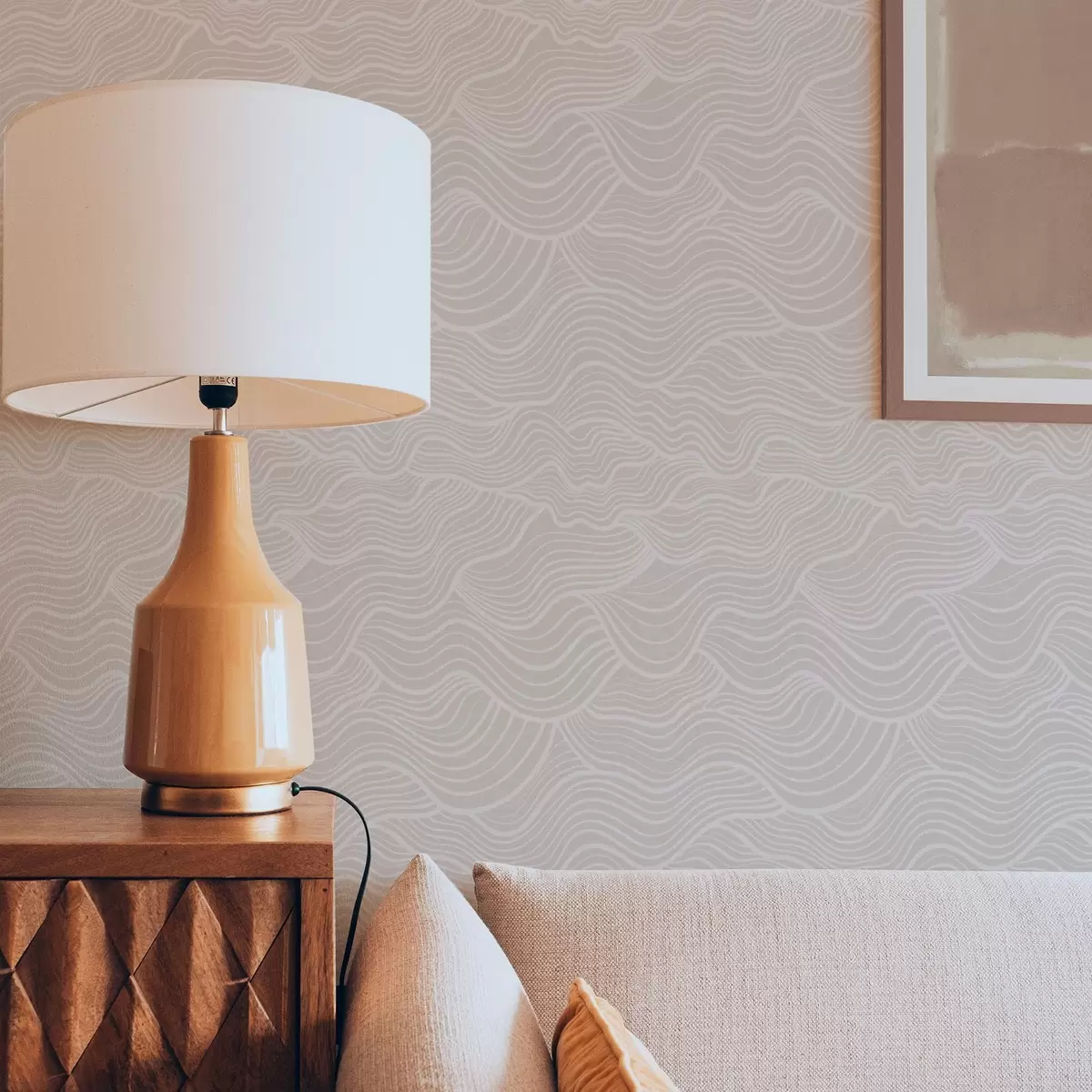 Tapeta Tón v tóne vlnitých čiar na teplom béžovom podklade Nr. a00681v1