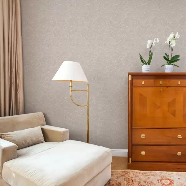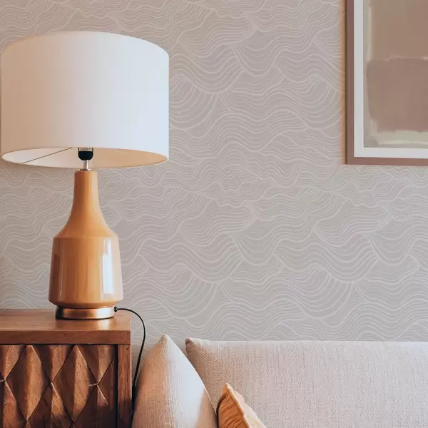 Tapeta Tón v tóne vlnitých čiar na teplom béžovom podklade Nr. a00681v1