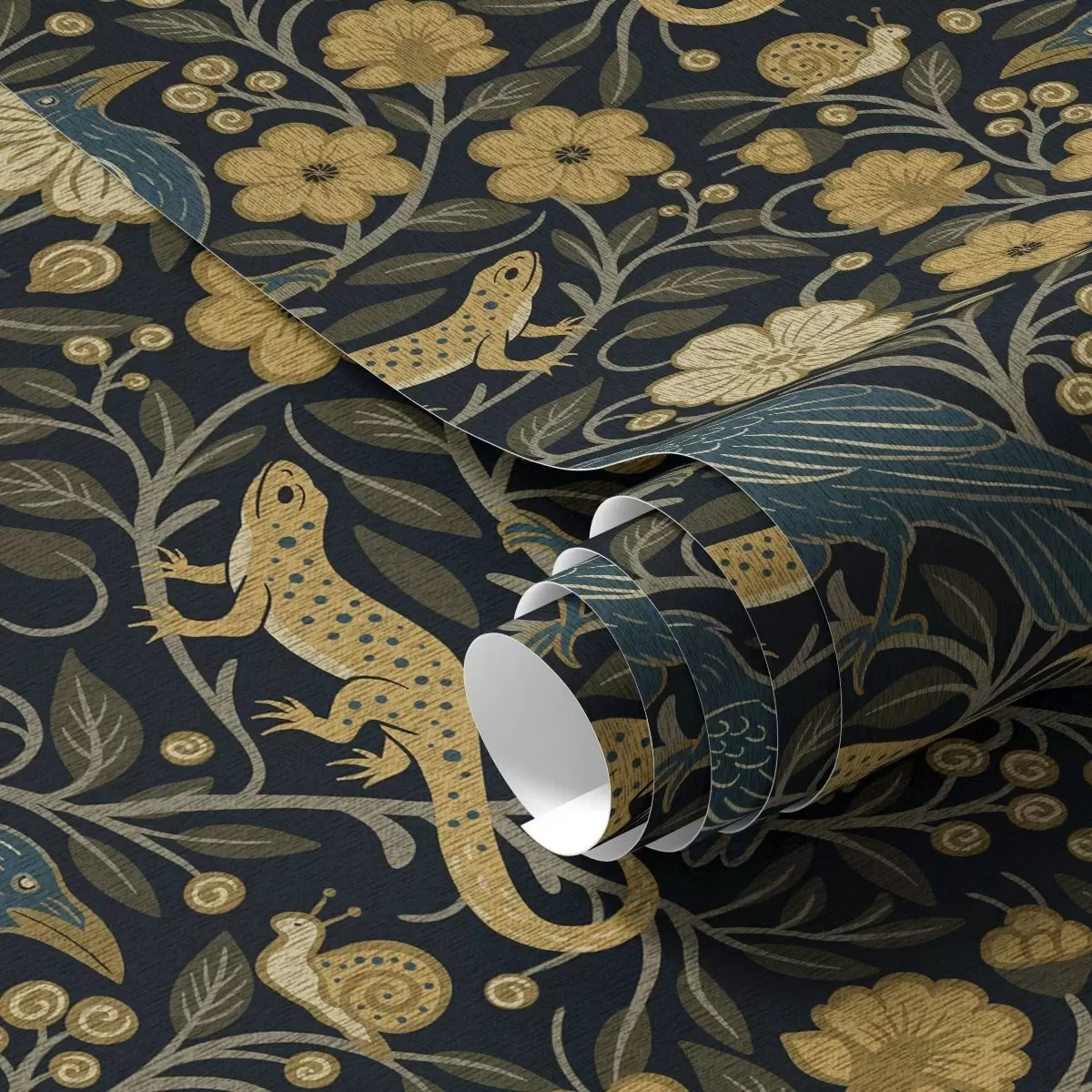 Tapeta Vtáky, jašterice a slimáky medzi kvetmi na tmavom pozadí Nr. a00691