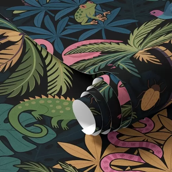 Tapeta Svetlé tropické zvieratá medzi lístím na tmavom pozadí Nr. a00701