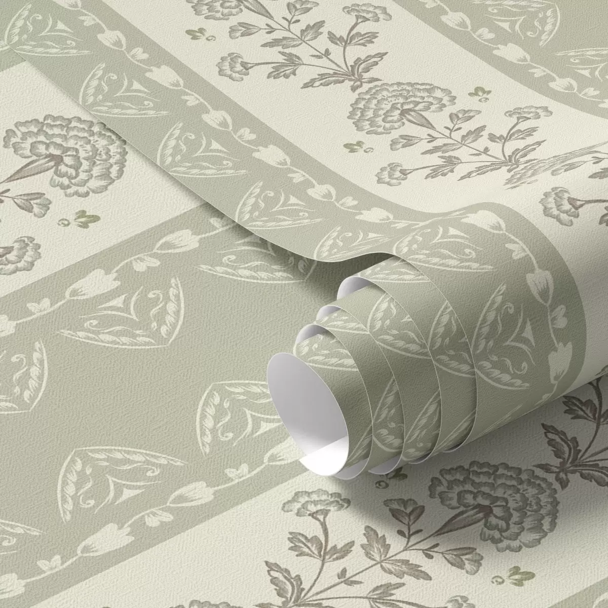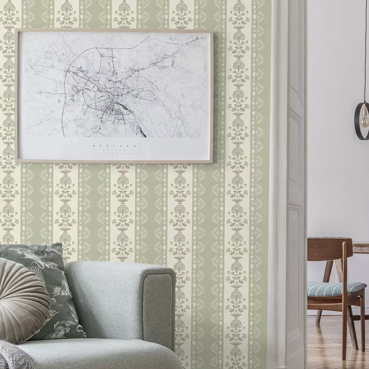 Tapeta Pruhovaný ornament s kvetinovými stĺpikmi v šalviových odtieňoch Nr. a00719