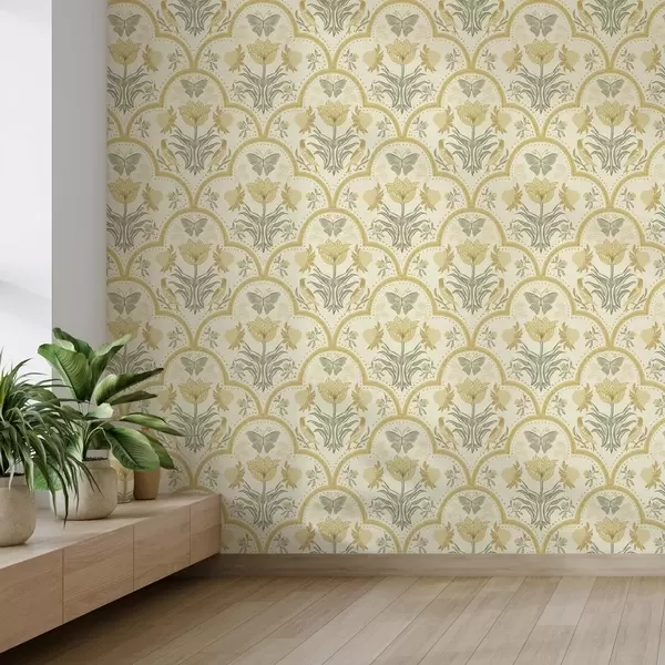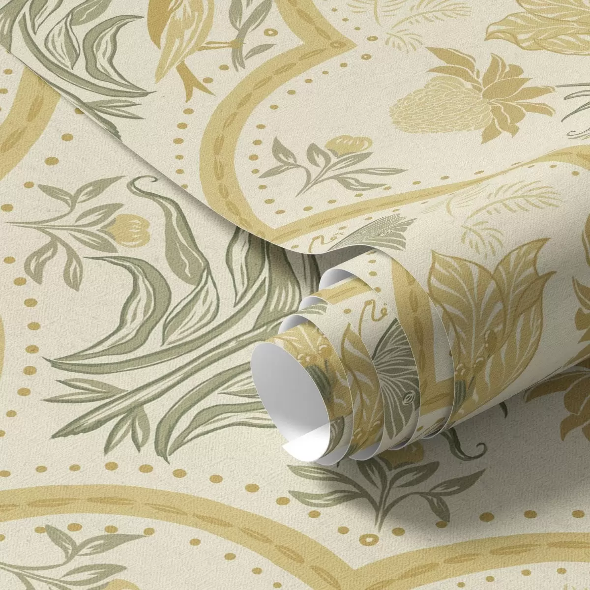Tapeta Ozdoba s tulipánom, vtákmi a motýľmi, okrová Nr. a00722