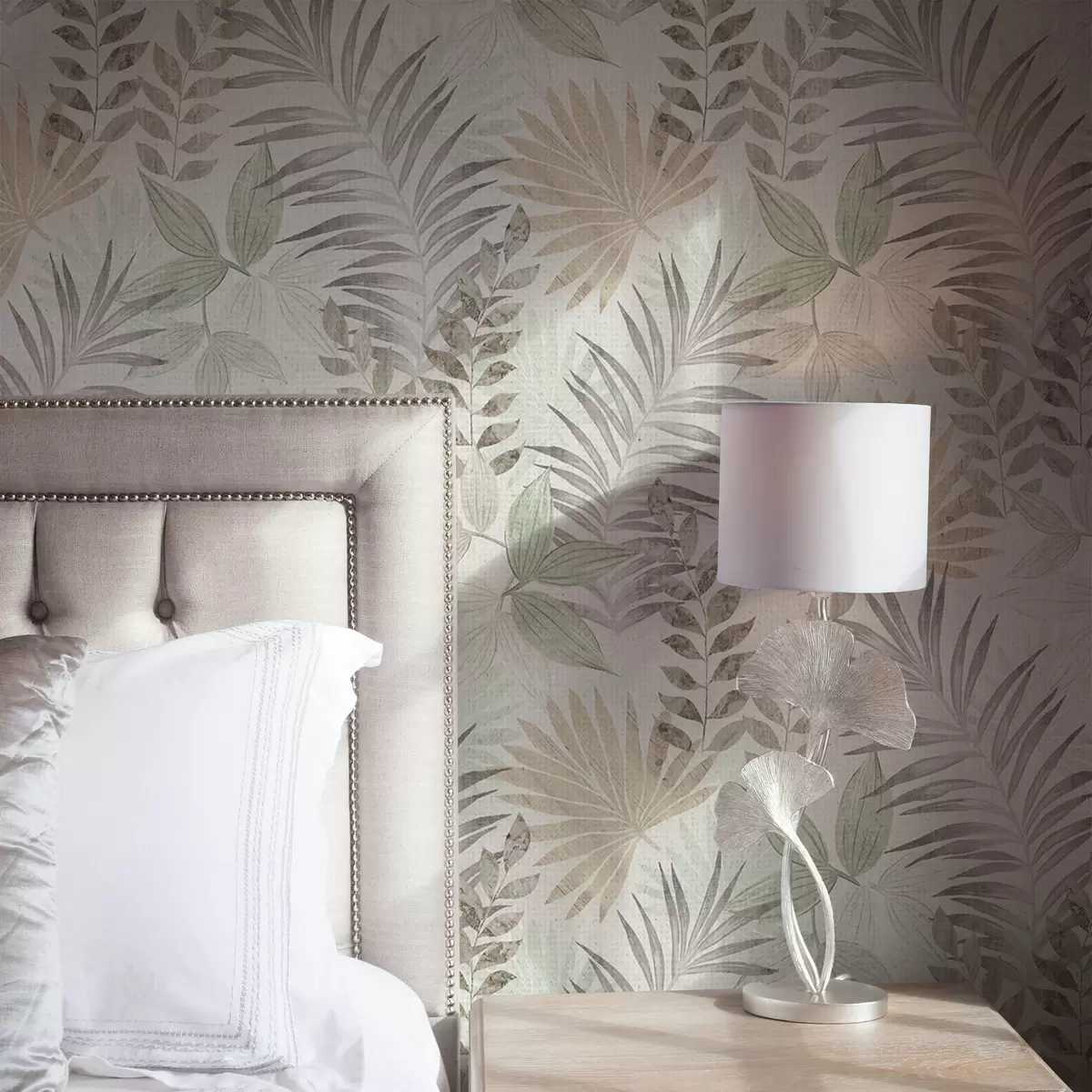 Tapeta Pastelové tropické listy na svetlom pozadí, jemná textúra Nr. a00725