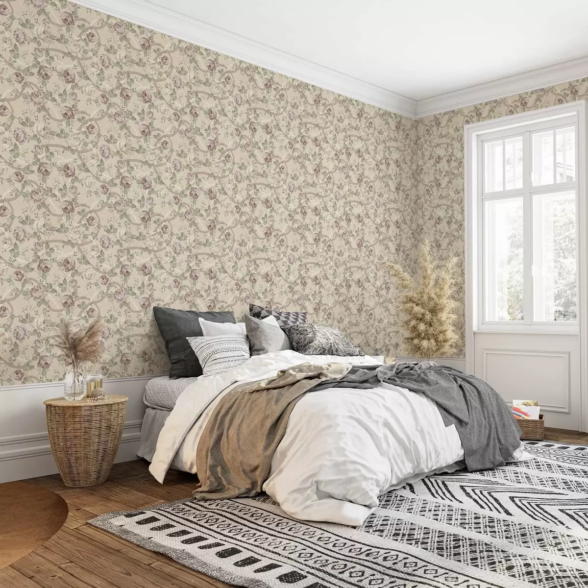 Tapeta Ruže so zelenými listami na teplom béžovom podklade Nr. a00729