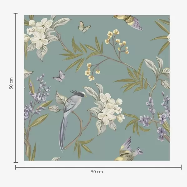 Tapeta Vtáky, kvety a motýle na modro-sivom pozadí Nr. a00735