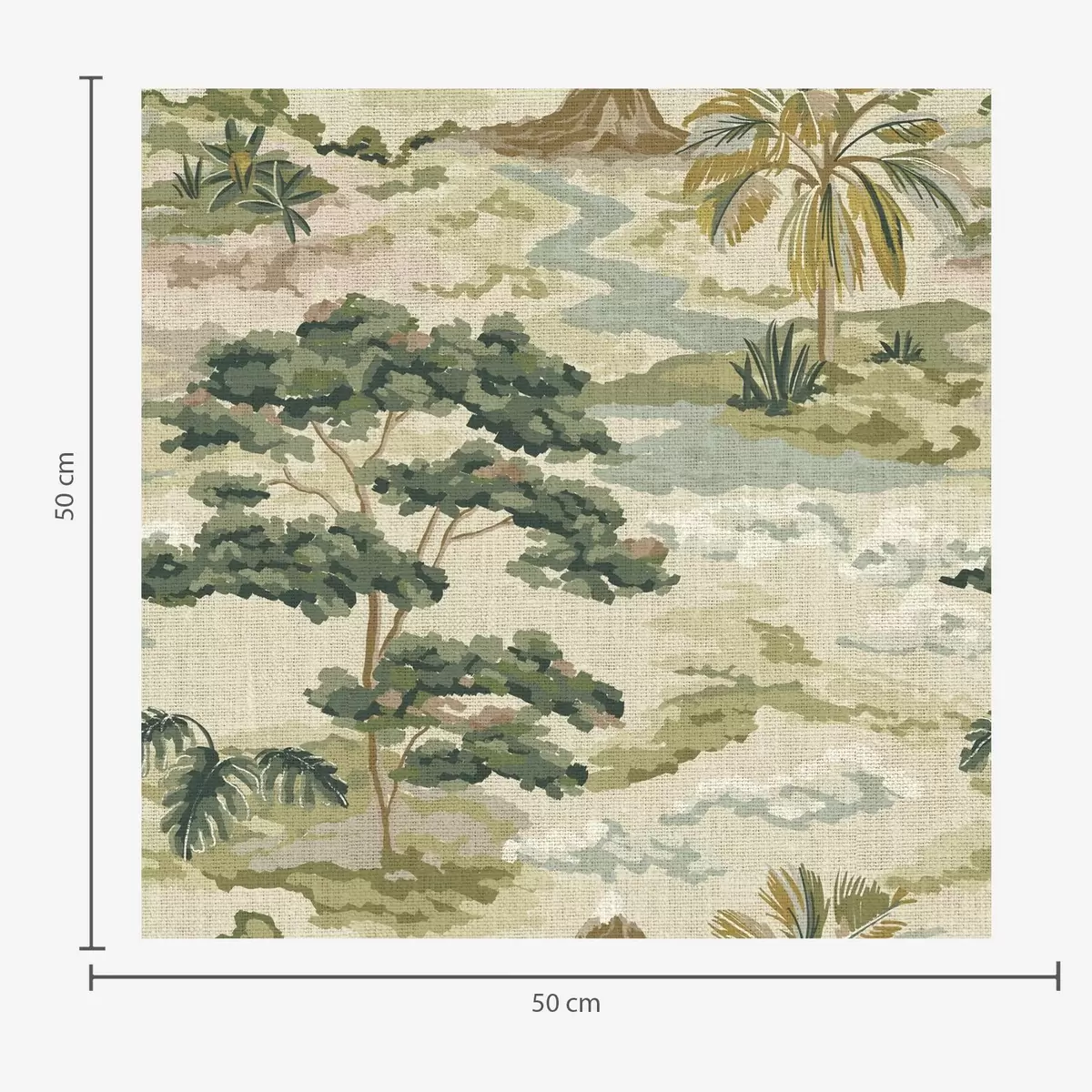 Tapeta Krajina s riekou, stromami a palmami v jemných tónoch Nr. a00736