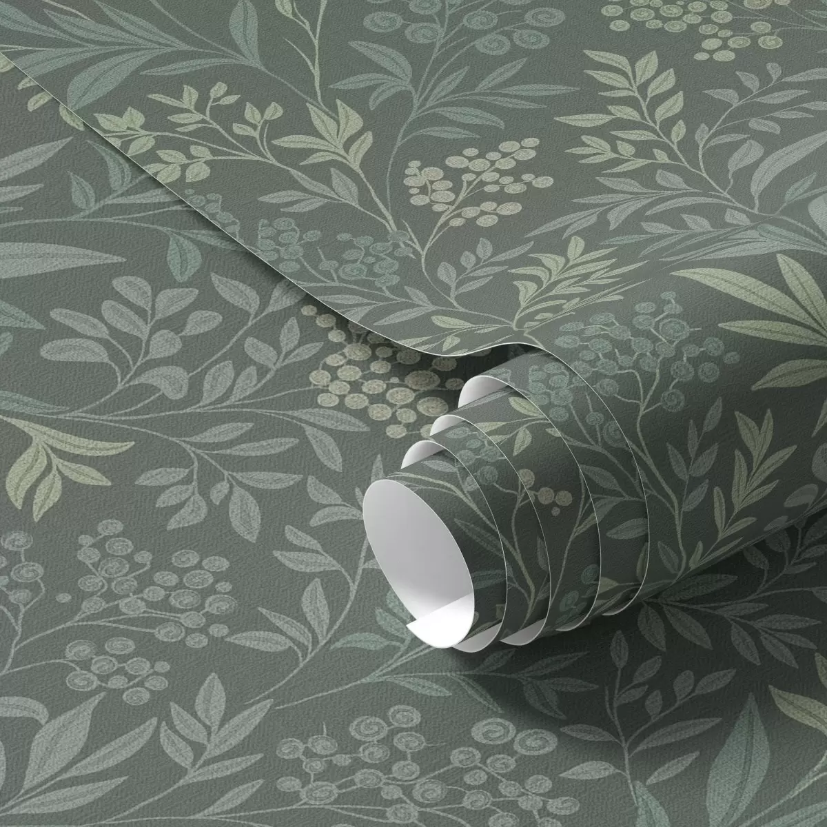 Tapeta Smaragdová tráva a bobule, jemný botanický vzor Nr. a00740