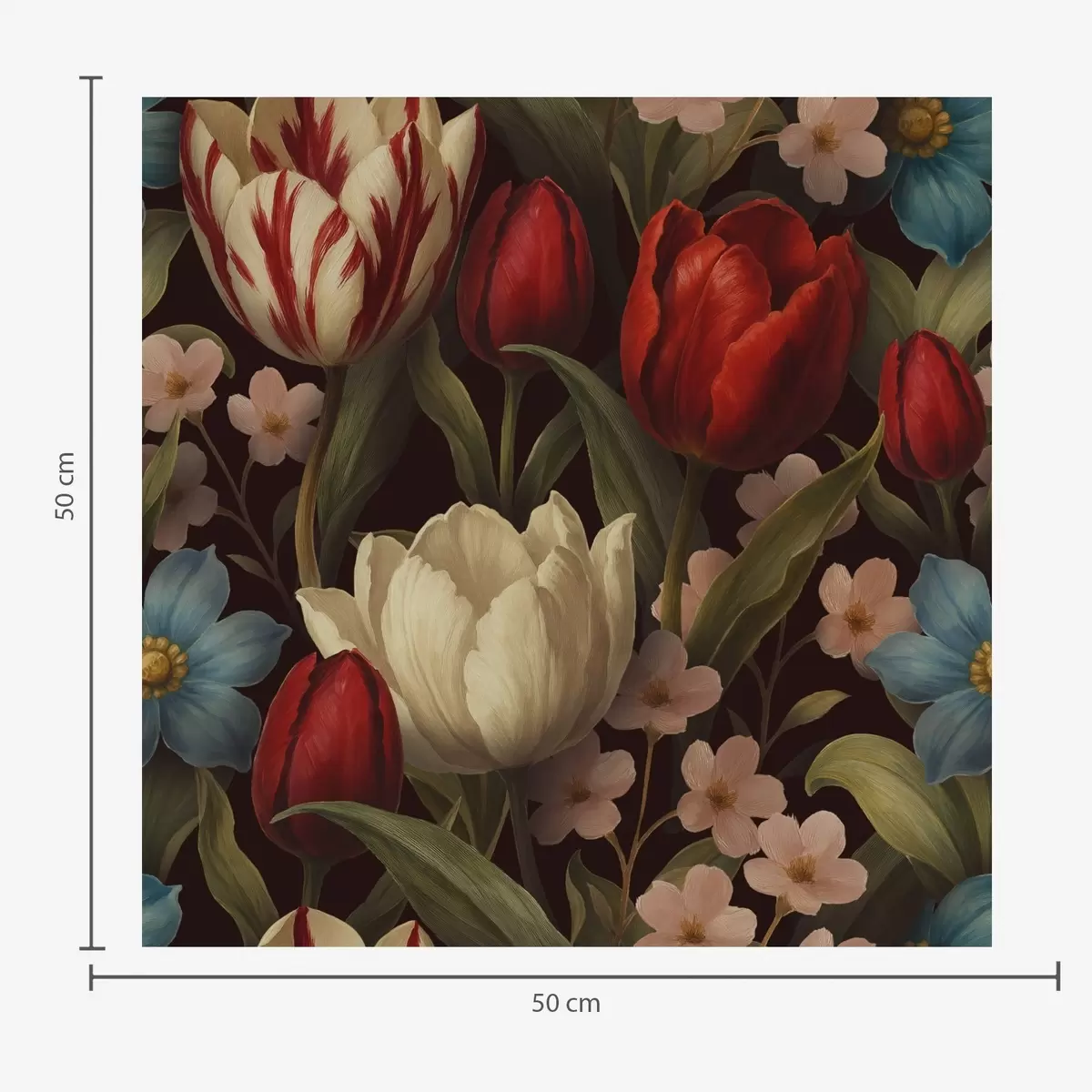 Tapeta Svetlé tulipány a modré kvety na tmavom pozadí Nr. a00746