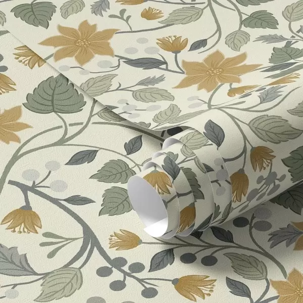 Tapeta Šplhajúce sa kvetinové vetvy so žltými kvetmi a bobuľami Nr. a00750