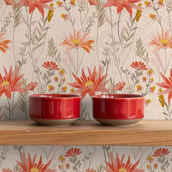 Tapeta Divoké kvety v teplých tónoch na béžovom pozadí Nr. a00751