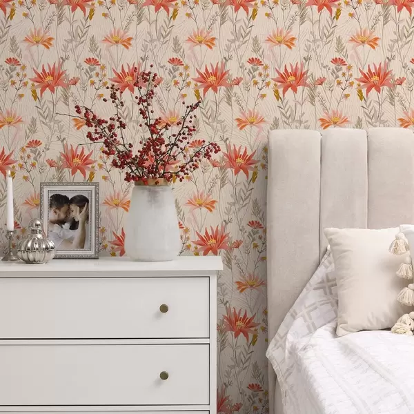 Tapeta Divoké kvety v teplých tónoch na béžovom pozadí Nr. a00751