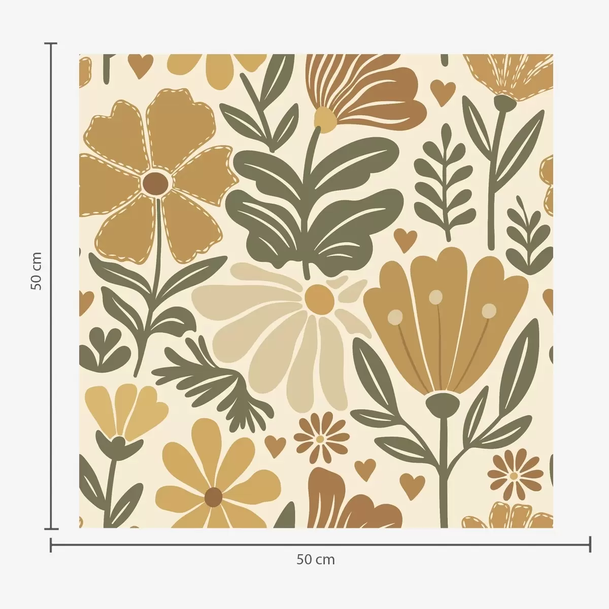Tapeta Štylizované kvety v teplých tónoch so srdcami Nr. a00752