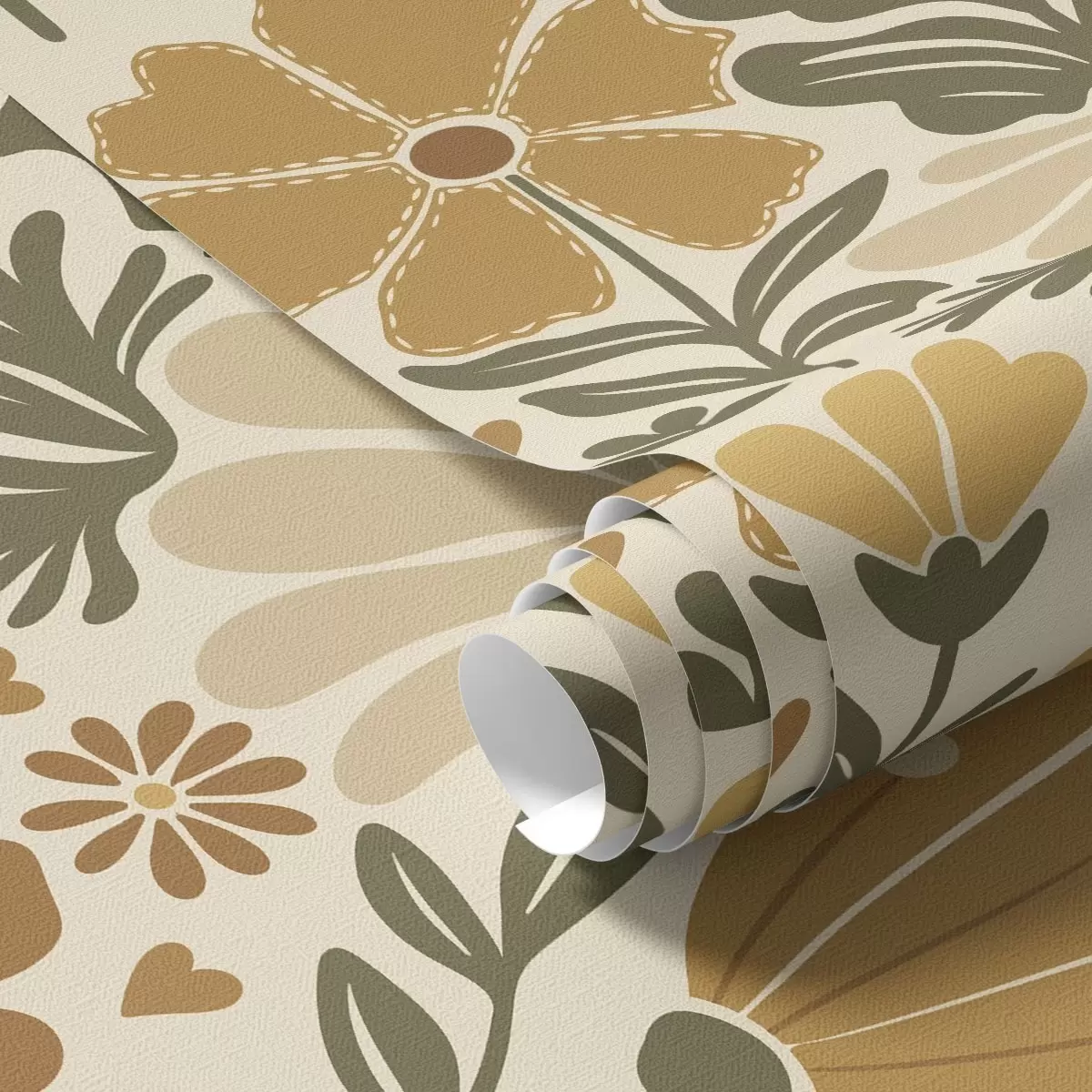 Tapeta Štylizované kvety v teplých tónoch so srdcami Nr. a00752